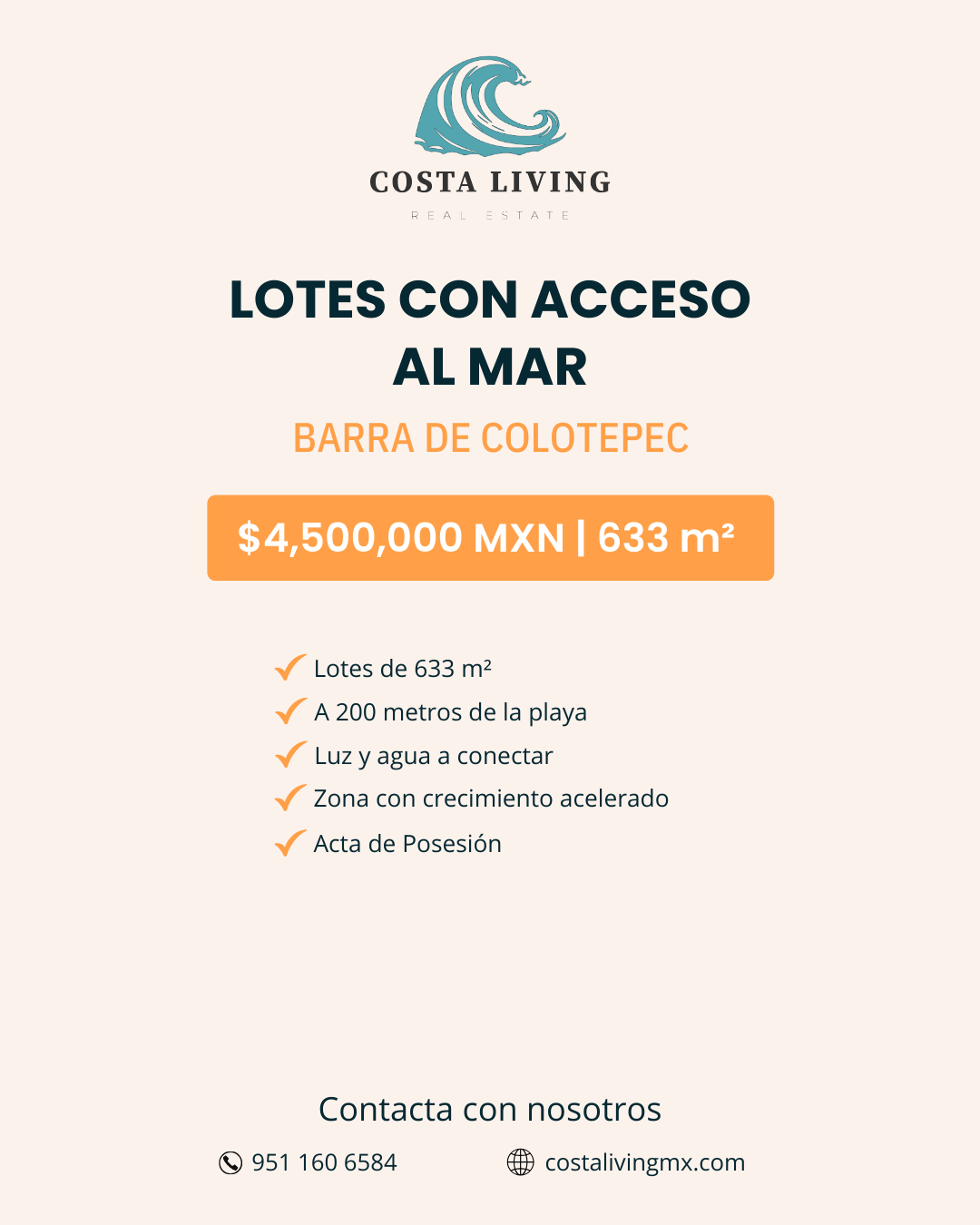 Oportunidad de inversión en La Barra de Colotepec: tres lotes de 633 m² cada uno, ubicados a solo 200 metros del mar y a 5 minutos de la carretera 200. Una zona con gran plusvalía, perfecta para proyectos de casas vacacionales o departamentos. ✅ Superficie: 633 m² cada lote ✅ 📍Barra de Colotepec ✅ Servicios: Luz y agua a conectar ✅ Acta de Posesión ✅ Zona con crecimiento acelerado ✅ Ideal para: Casas vacacionales y proyectos de inversión 💰 Precio: $4,500,000 MXN